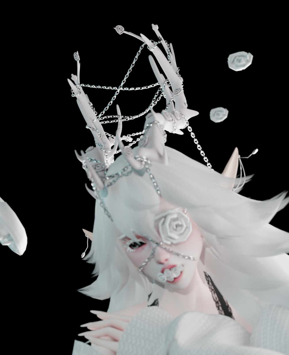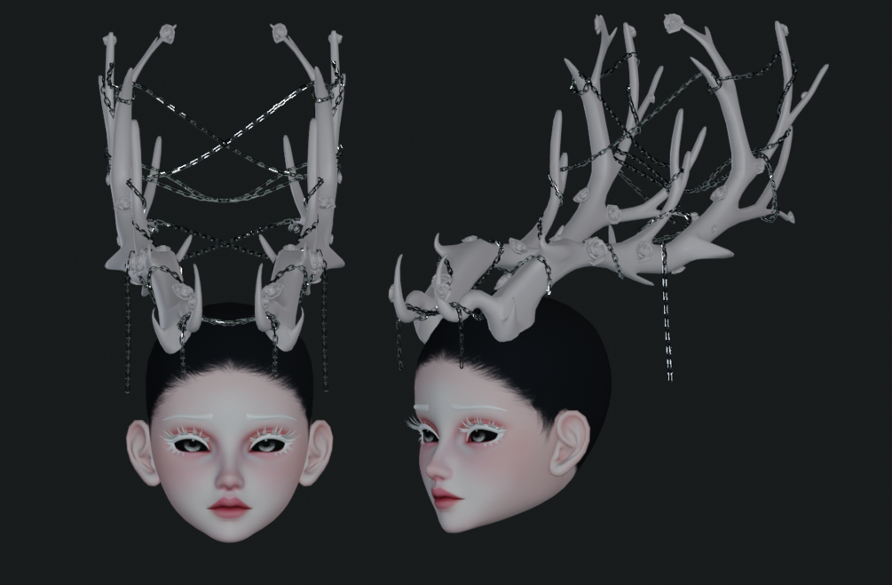 In ancient woods, her horns entwine, White and long, with blooms align, Chains of flowers, a regal sign, Guardian of nature's design.